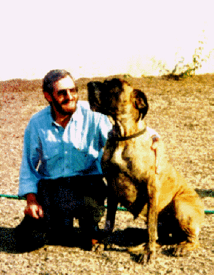¿Quien acompaña a quien? La foto me presenta junto a mi perro Dogge aleman. "Gora" hace un tiempo ya que la cascó.